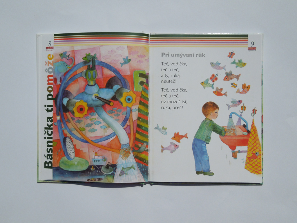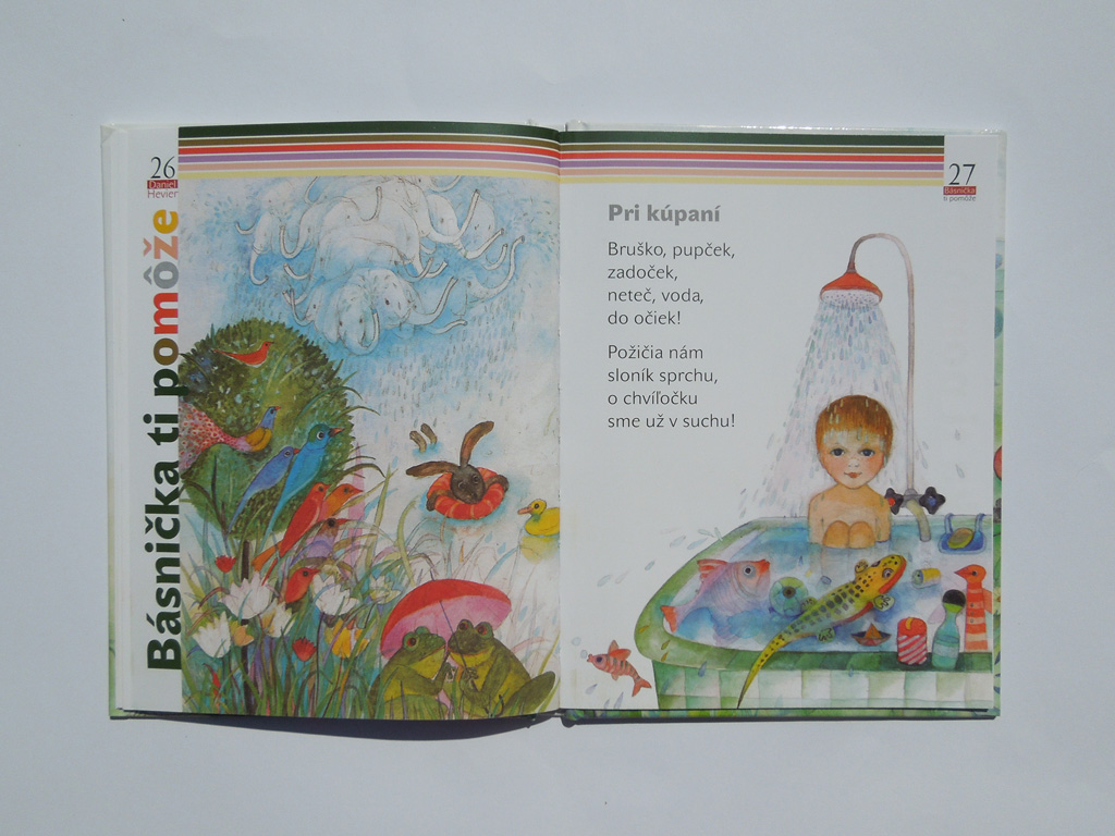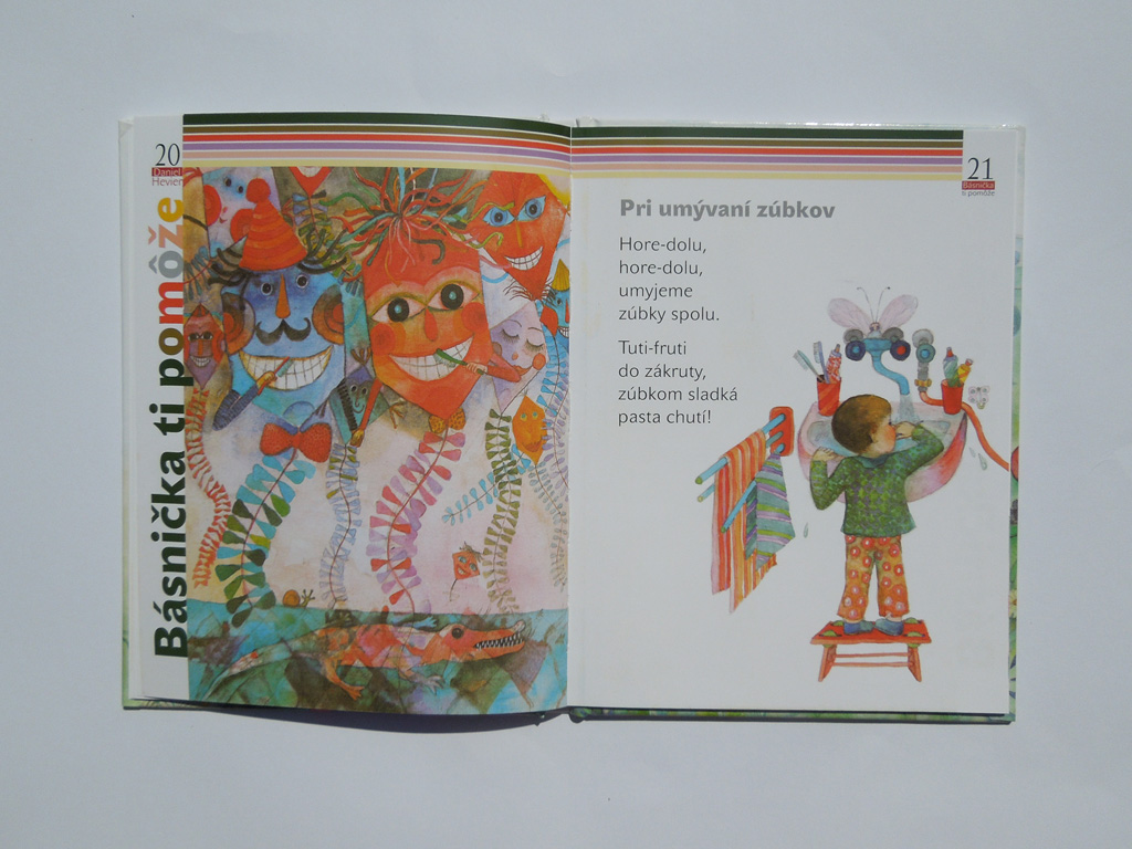 Názov: Básnička ti pomôže Text: Daniel Hevier Ilustrácie: Oľga Bajusová Vydal: Buvik, 2011 Strán: 40 ISBN: 9788081240157