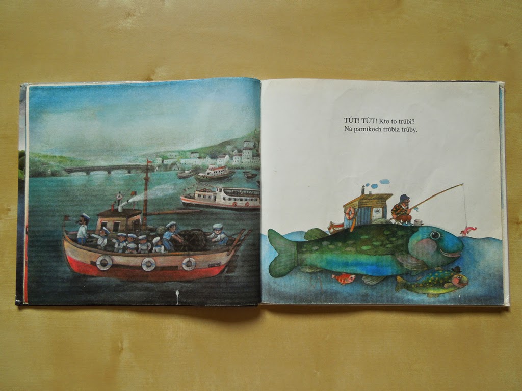 Čo mám však najradšej, sú ilustrácie Vlasty Baránkové. Jemné, tmavé farby, zaoblené tvary, okrúhle detské tváričky a ešte rybacie oči pána kapitána. Radosť listovať.