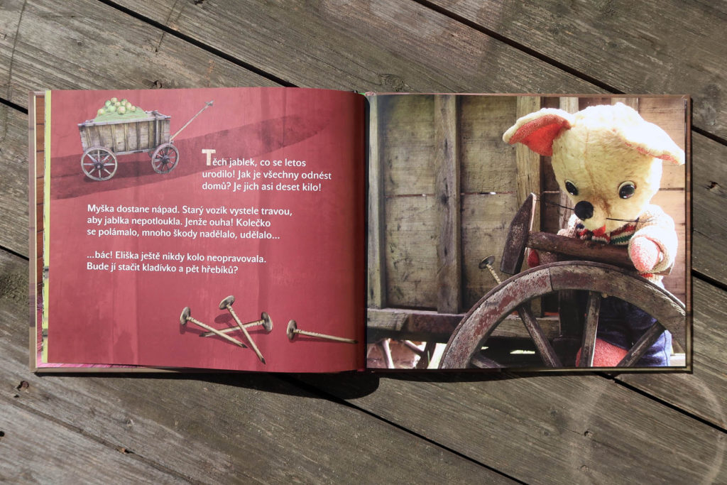 Autorská kniha je ilustrovaná technikou kombinujúcou fotografiu a počítačovú kresbu. Samotné fotky aj obrázky sú pekné. Plyšová myška zasadená do reálneho prostredia funguje v príbehu perfektne. Občas mi ale vadila grafická úprava stránok, ktorá mi príliš nesedela.