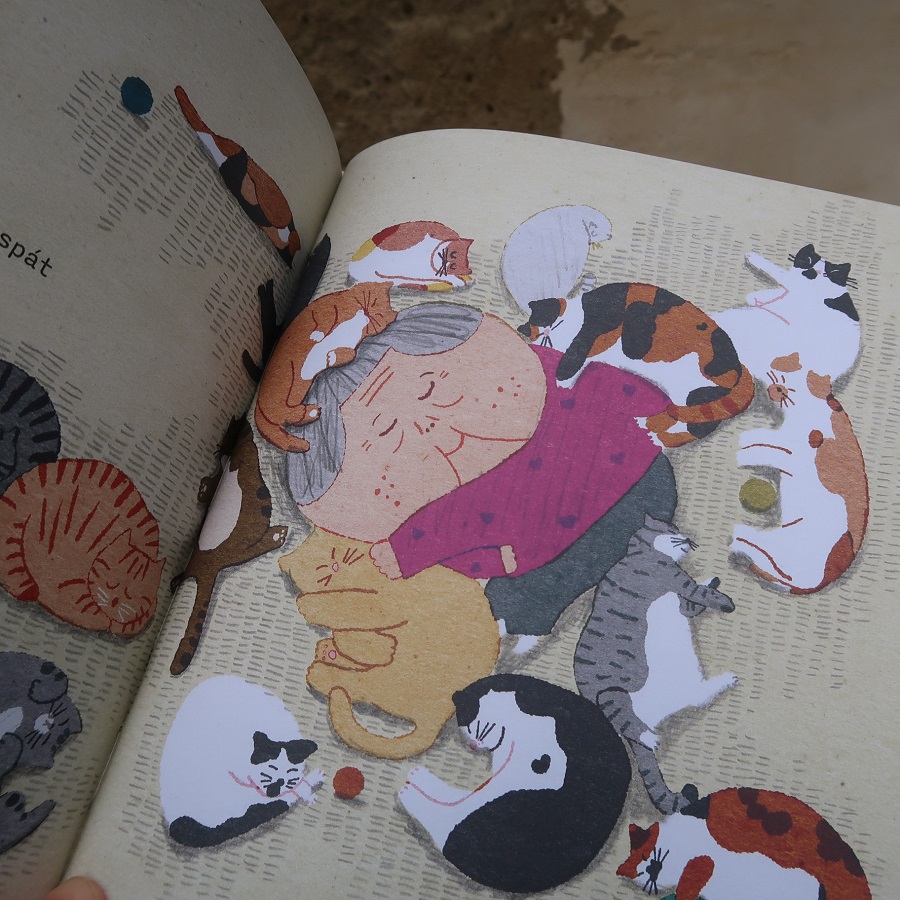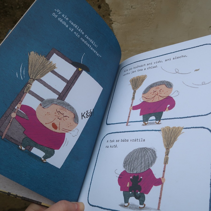 V obrázkových knihách mám rada, keď ilustrácie občas dej na strane posúvajú cez akoby komiskové panely. Autorky tak dokážu pekne pracovať s emóciami čitateľov. Prekvapenie a smiech, keď sa bába otočí a na chrbte jej visí mačka. Obzvlášť silná je dvojstrana, keď sa bába poddá smútku a rozplače sa. Aj to je súčasť života.