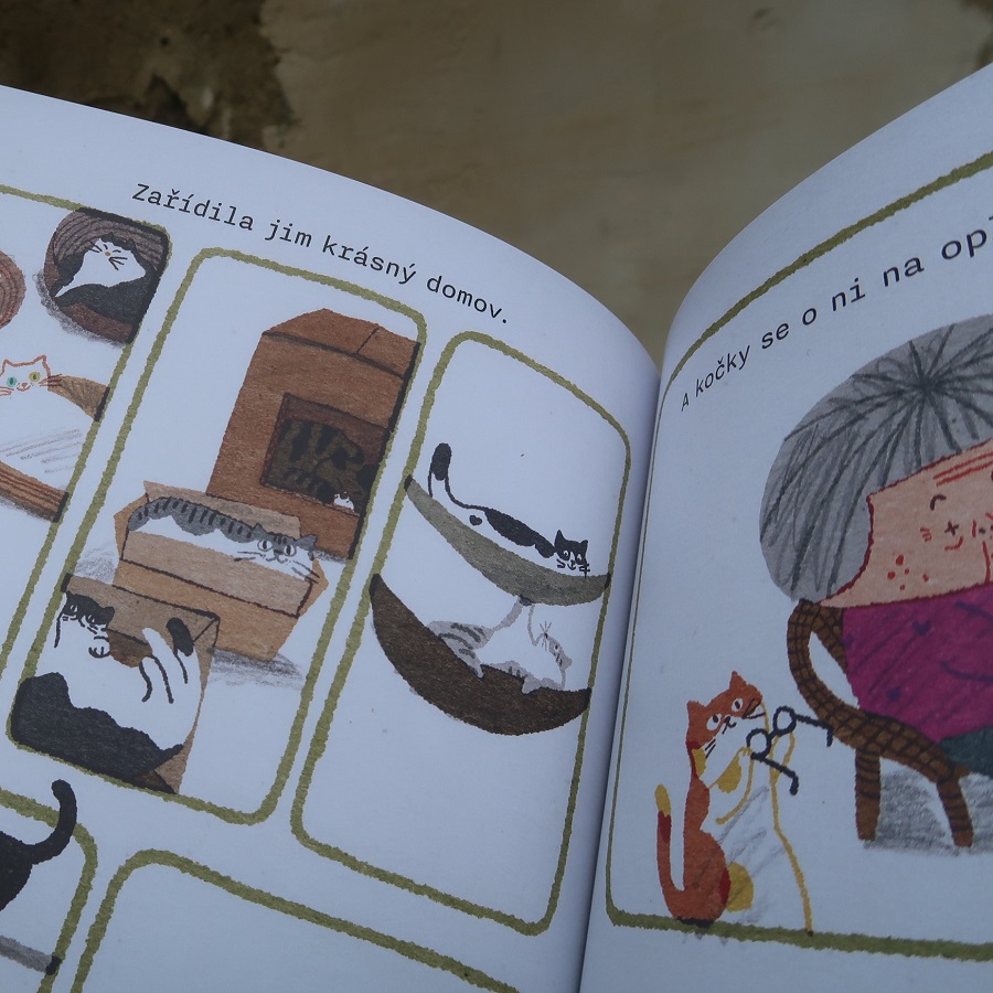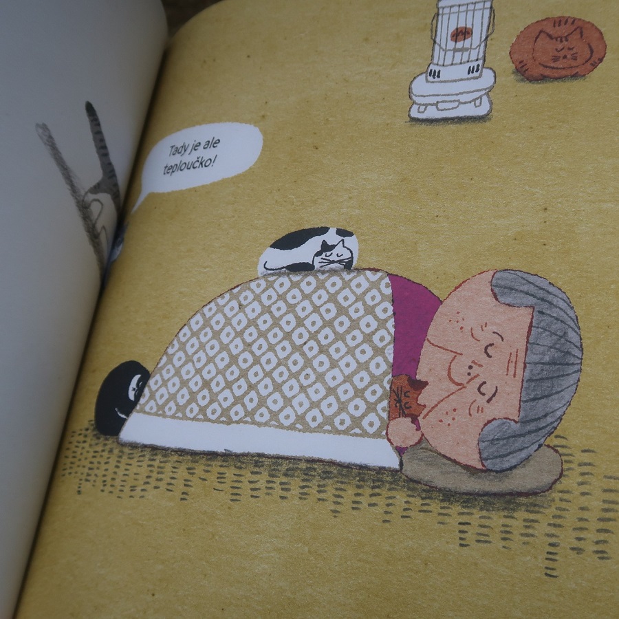 Ilustrácie sú vážne to najlepšie, čo súčasná svetová scéna obrázkových kníh prináša. Milé a vtipné. Relatívne jednoduché, takže sú prístupné aj najmenším deťom. Príjemné farby pôsobia ukľudňujúco a hrejivo. Presne ako si predstavujem nejaký starý dom na ázijskom vidieku plný mačiek.