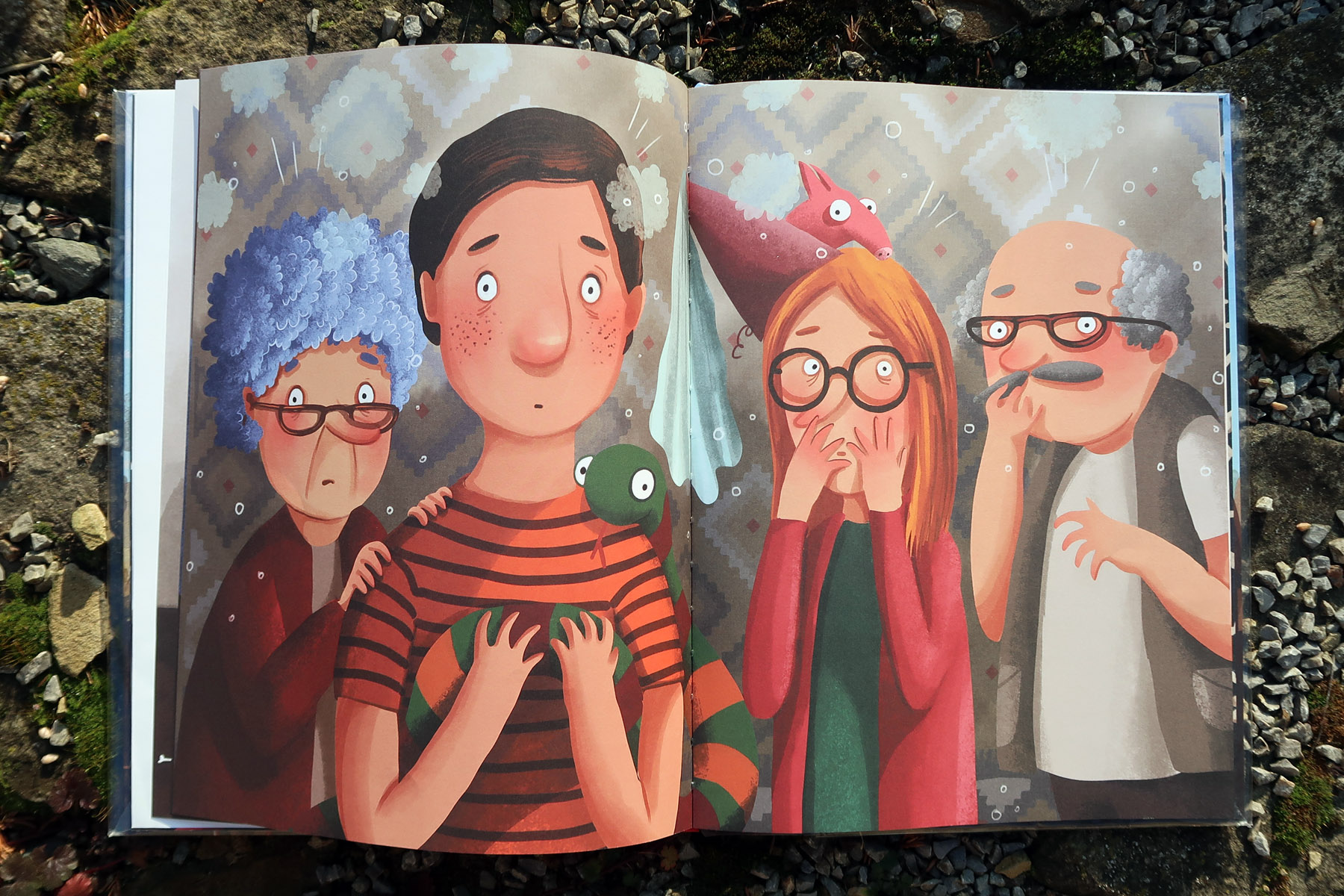 Knihu napísal poľský autor Grzegorz Kasdepke a ilustrovala skvelá Emilia Dziubak. Presne tá, ktorej kniha Rok v lese vyvolala v Čechách aj na Slovensku taký rozruch pred pár mesiacmi. Musím povedať, že ilustrácie sú obrovským plusom. Dodávajú príbehu na vtipnosti. Dvojstrana s prekvapenými pohľadmi rodičov nás s mužom pri čítaní spoľahlivo rozosmiala. Napokon, aj pomerne veľký formát knihy ilustráciam dáva krásne vyniknúť.