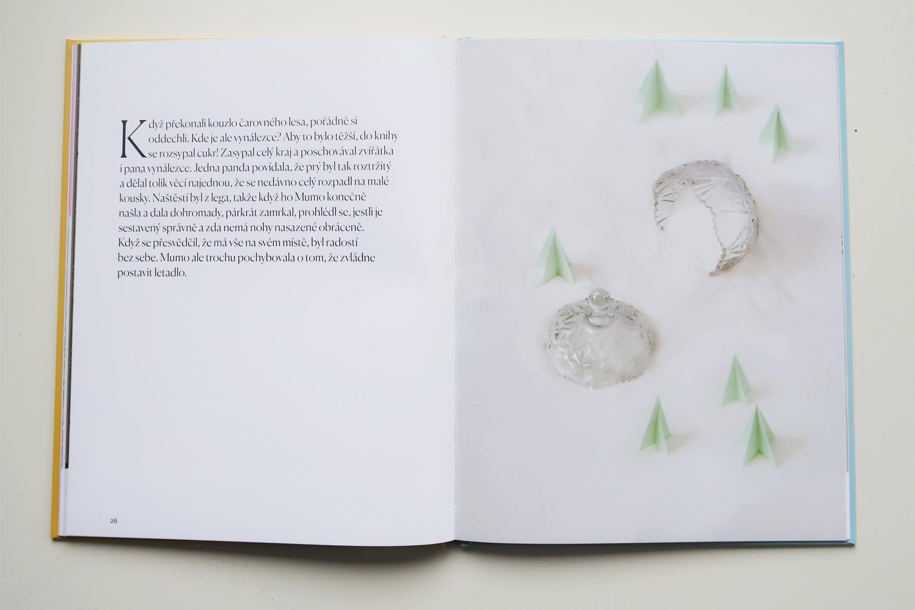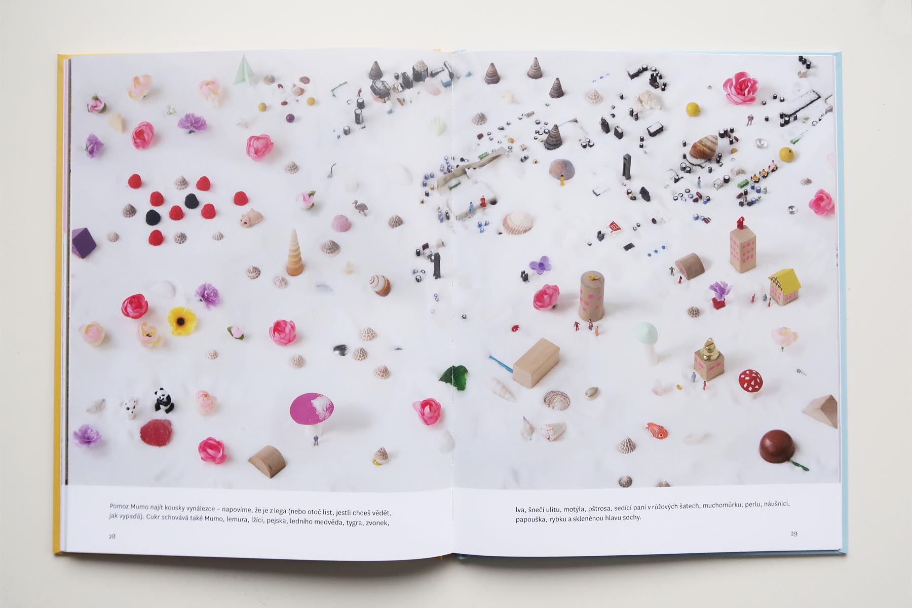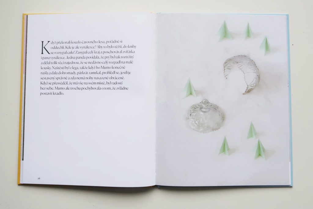 Na prvý pohľad fantastickými fotkami, poskladanými z reálnych miniatúrnych vecičiek. Hneď potom pomerne rozsiahlym príbehom, plným dobrodružstiev. Príbeh je priamočiary, popisuje cestu malej drevenej panenky Mumo. Tá sa ocitla v čarovnej krajine a hľadá cestu späť do detskej izby. Príhody sú popísané stručne, a tým nechávajú veľký priestor detskej fantázii. Dieťa si tak ľahko môže dotvárať svoje vlastné podrobnosti a príbeh rozvíjať. Pomáhajú v tom aj nádherné, precízne vystavané obrázky plné prekvapivých detailov.