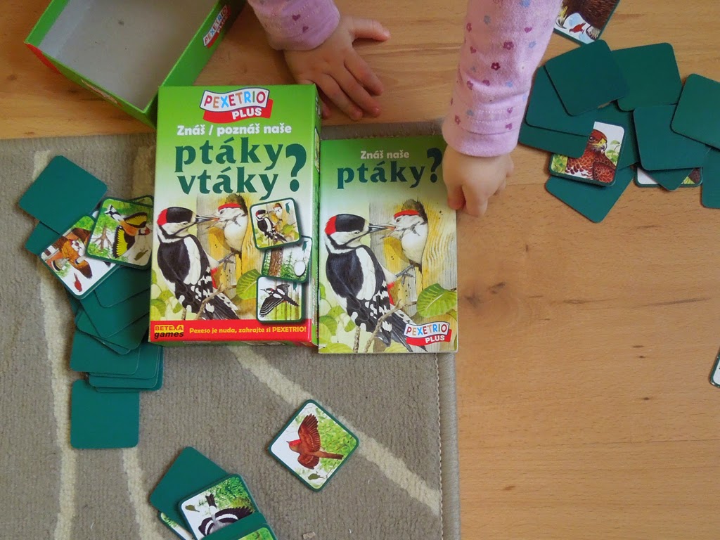Knihu dopĺňame pexetriom Znáš naše ptáky od Betexa. Len vo fáze priraďovania kariet k obrázkom a pomenovania vtáčikov. Aj ich ostatné série sa mi páčia, chystám sa dokúpiť pexetrio o stromoch. A všetky majú české aj slovenské popisky.
