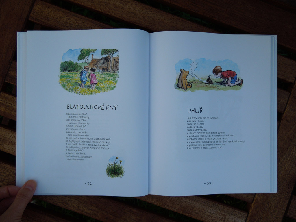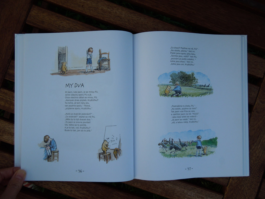 Takže aby si pampúch nevytvoril vazbu Pú = Disney, bolo treba zakročiť (áno, ja som z tých rodičov). Na samotné príbehy je ešte malá, ale objavila som v Levných knihách dve Milneho zbierky básní pre deti: Když jsme byli velmi mladí a Teď je nám šest. A čuduj sa svete, básničky majú veľký úspech.