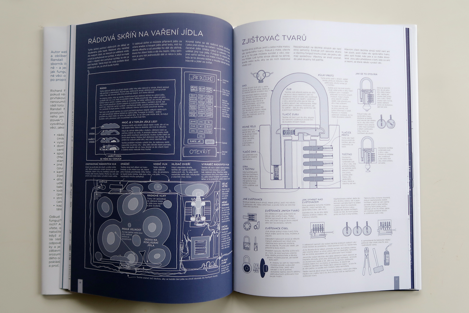Na iných stranách sa skutočne dozviete ako niektoré veci fungujú. Všetko je popísané celkom jednoducho (občas teda musíte dekódovať autorov jazyk) a tak sa aj mnohé dozviete. Osobne ma najviac bavil „zjišťovač tvarů“. Krásna ukážka toho, ako urobiť z popisu činnosti zámku skoro filozofické zamyslenie.