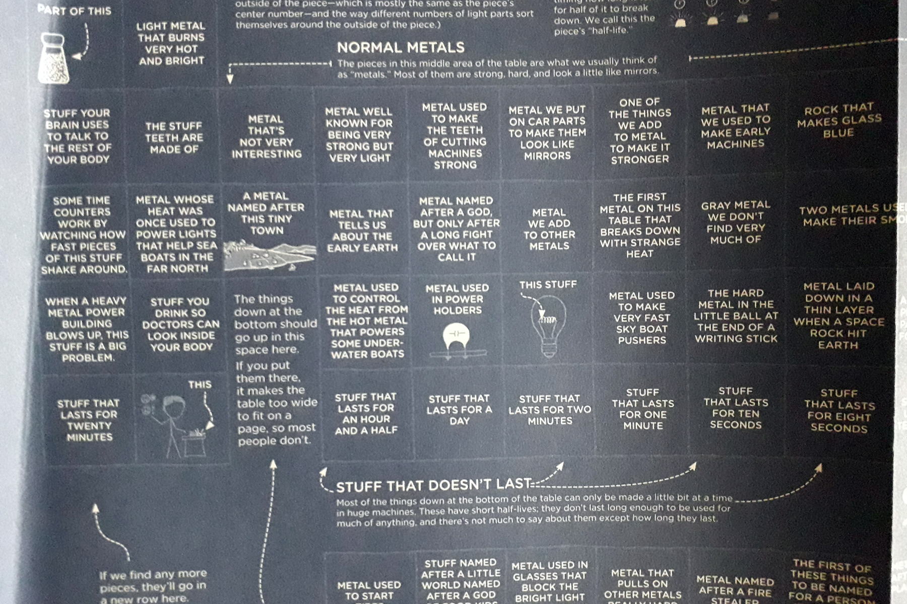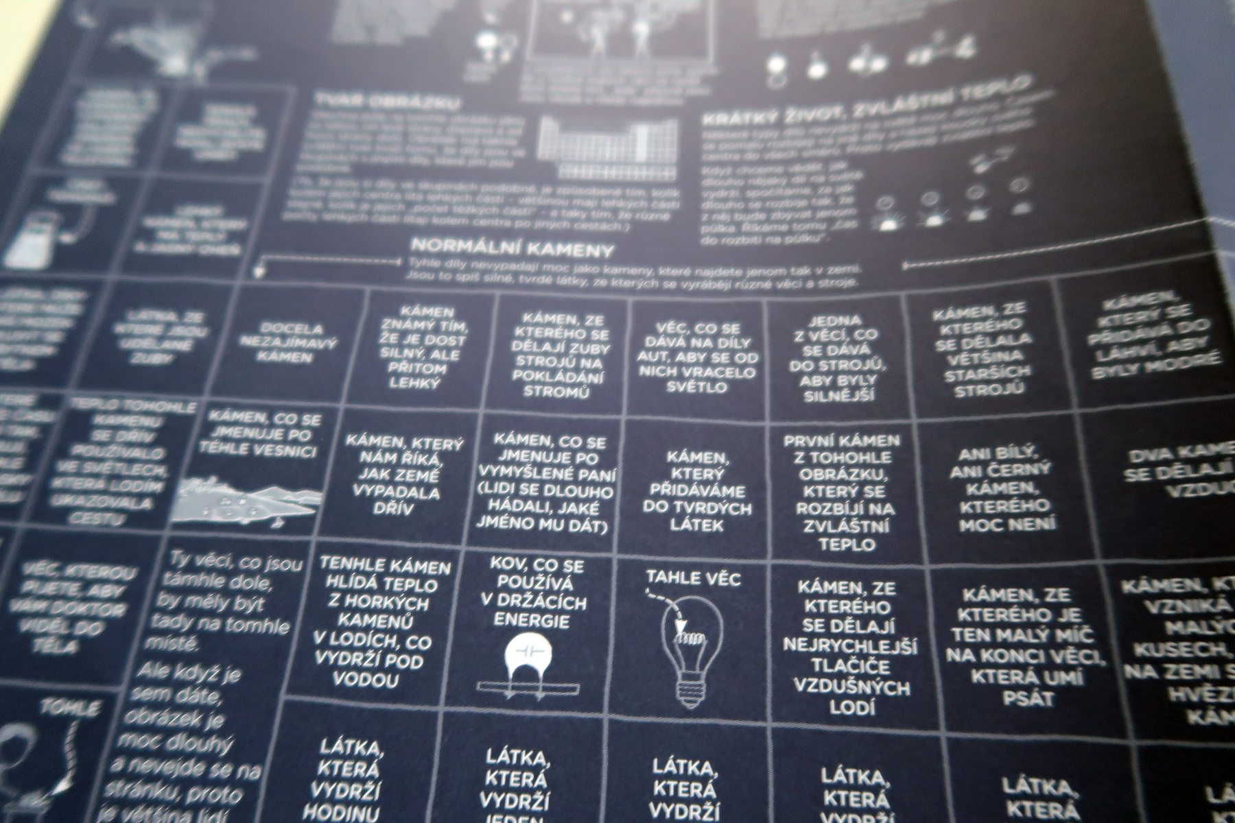 Časti, ktoré dokážem posúdiť, sú dobré. Technické popisy sa mi zdajú adekvátne a zábavné zároveň. Zarazila ma ale periodická tabuľka. Našťastie máme v rodine aj chemikov, takže som im knihu drzo podstrčila. Tiež krútili hlavami. Nepochopili sme totiž použitie slova „kámen“ namiesto kov. Dokonca som pozrela aj originál, môžete si porovnať. Celá tabuľka tak vyzerá dosť absurdne.