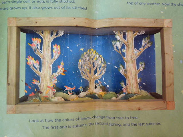 A už sme pri fascinujúcich ilustráciach, ktoré vytvorila Soyeon Kim. Použila dosť netrdičnú techniku. Vytvorila sedem diorám a v nich vyfotila detaily pre jednotlivé stránky. Na vnútornom obale sú obrázky všetkých diorám s krátkymi poznámkami. Pri výrobe využila množstvo rôznych materiálov, napríklad usušené kvety z vlastnej záhrady. Ilustrácie sú takto živo trojrozmerné a viditeľné šnúrky zas umocňujú efekt prepojenia.